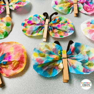 Cut out butterfly shapes from construction paper and provide colorful tissue paper squares. Your kiddos can scrunch the tissue paper and glue it onto the butterfly wings, resulting in beautiful, textured designs. This activity is great for fine motor skills and color recognition.
